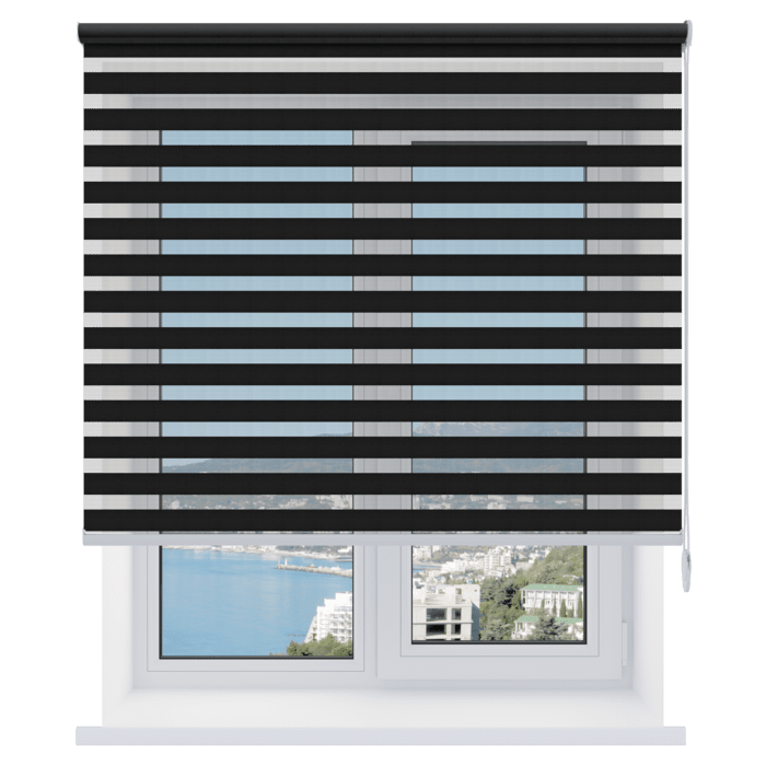- Гибкая регулировка освещения. Чередование прозрачных и непрозрачных полос позволяет плавно изменять уровень проникновения света, создавая комфортный световой режим.